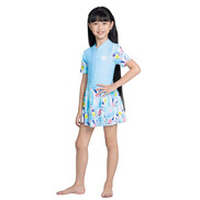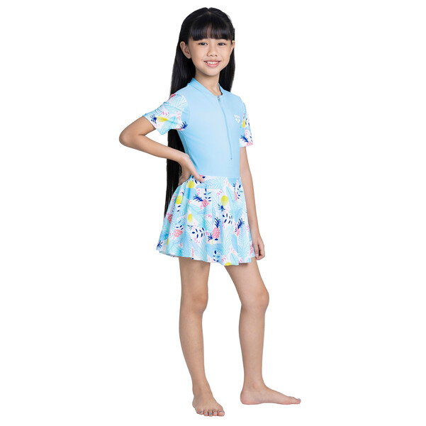 Designed for comfort and confident coverage, this junior one-piece skirt swimwear features a soft and breathable fabric that feels gentle on the skin. The skirted silhouette provides added coverage while allowing easy movement in the water. A front zip design ensures easy wear, and the comfortable fit makes it suitable for swimming lessons, pool activities, and beach outings.