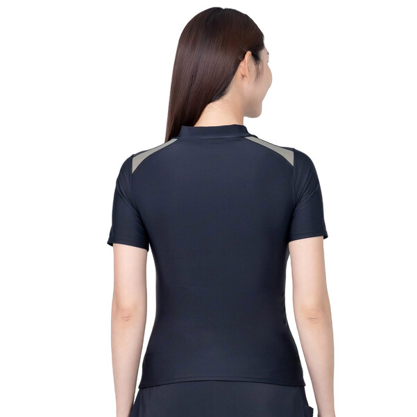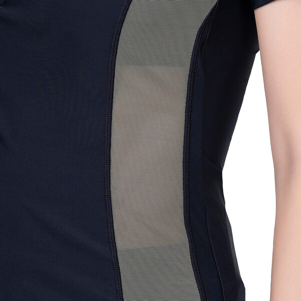 Stay cool and confident with this sporty short-sleeve top, designed with breathable mesh side panels for maximum ventilation. The front zip adds both style and convenience, while the tailored fit flatters your shape.