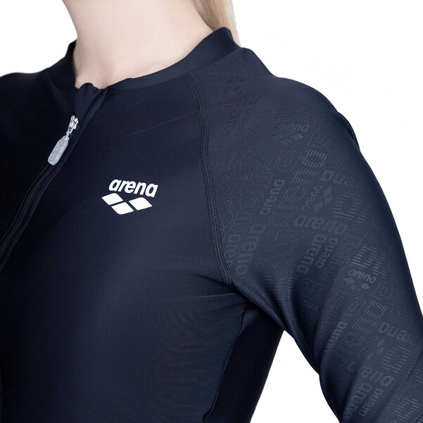 Add a fresh, sporty touch to your swim look with this long sleeve swim top. Designed with a fitted shape and front zip closure, it offers a clean and modern appearance with added coverage. Suitable for swimming, poolside wear, or relaxed water activities, this swim top is a versatile option for everyday use with a confident and comfortable look.