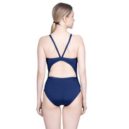 This one-piece swimwear features a clean, streamlined look with a flattering fit designed for everyday swimming. The simple front silhouette is complemented by an open-back design with secure straps, adding a modern touch while allowing easy movement.