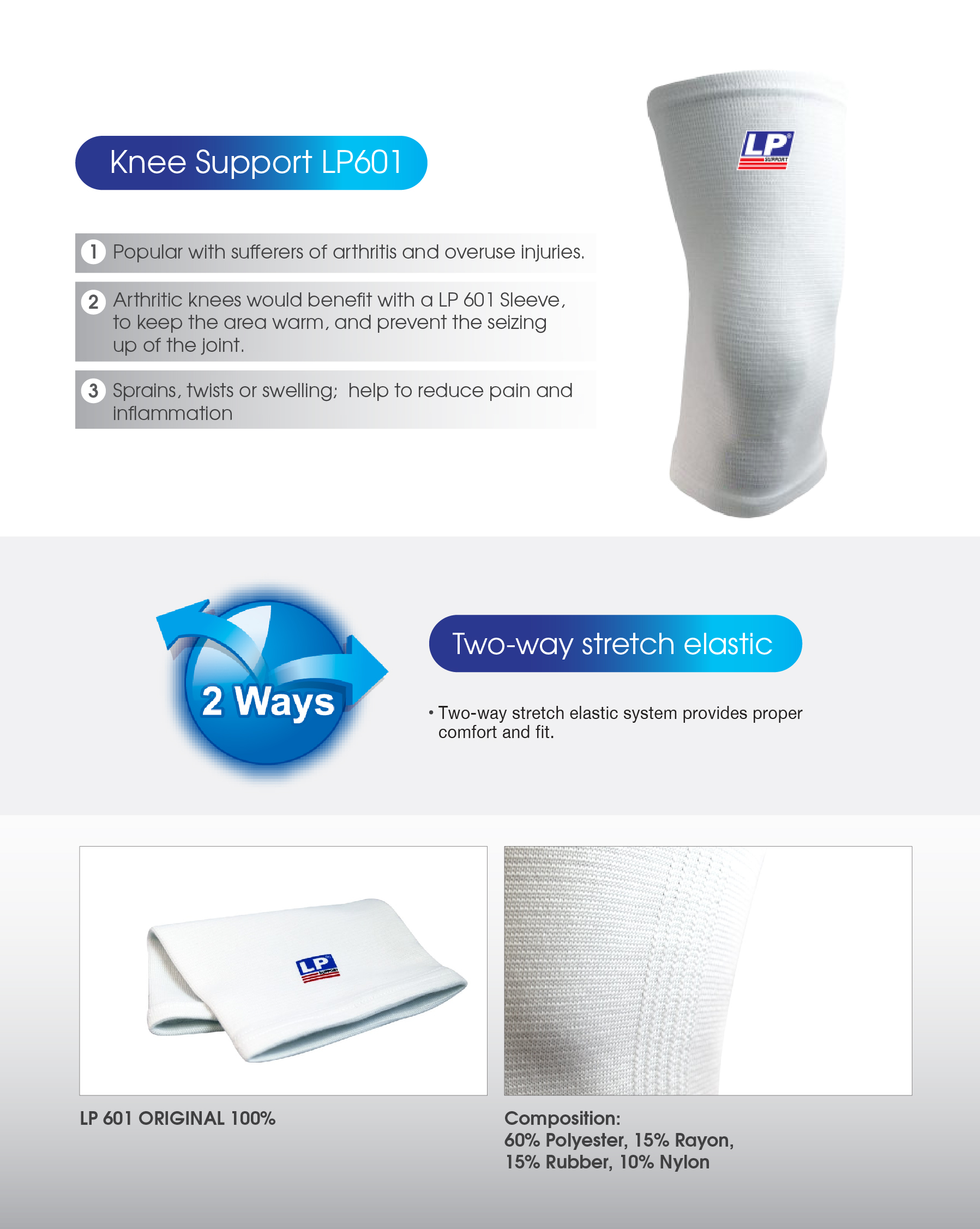 The LP Elasticated Knee Support reduces the pain and instability resulting from a minor injury or weak knee.