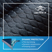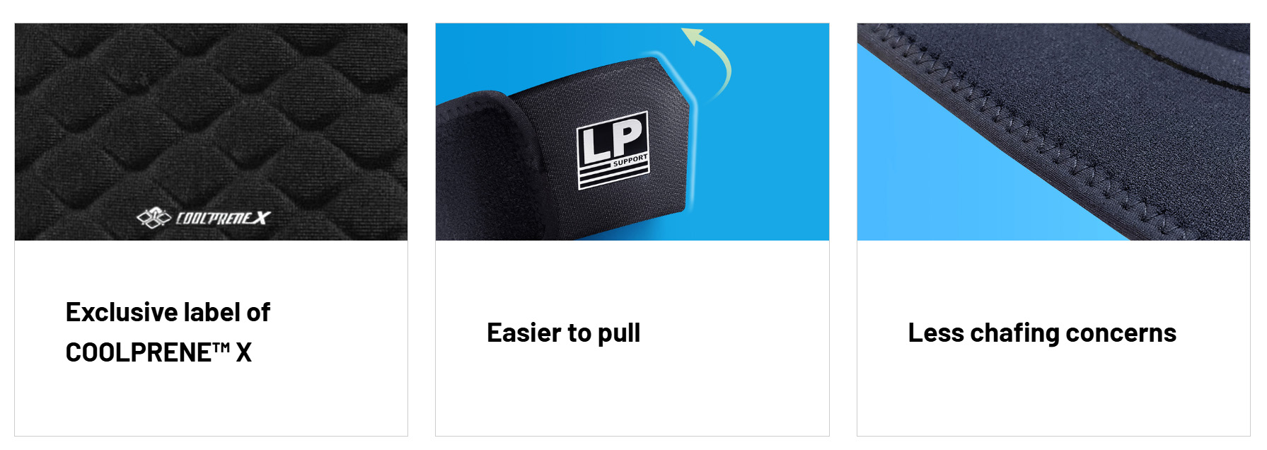 COOLPRENE™ X, an LP proprietary technology, is a thin but strong material which generates high level of support. The dynamic diamond grooves on COOLPRENE™ X are designed to create a massage effect on muscles during body movements; a pumping action is meanwhile performed to squeeze moisture and heat out for superior comfort.