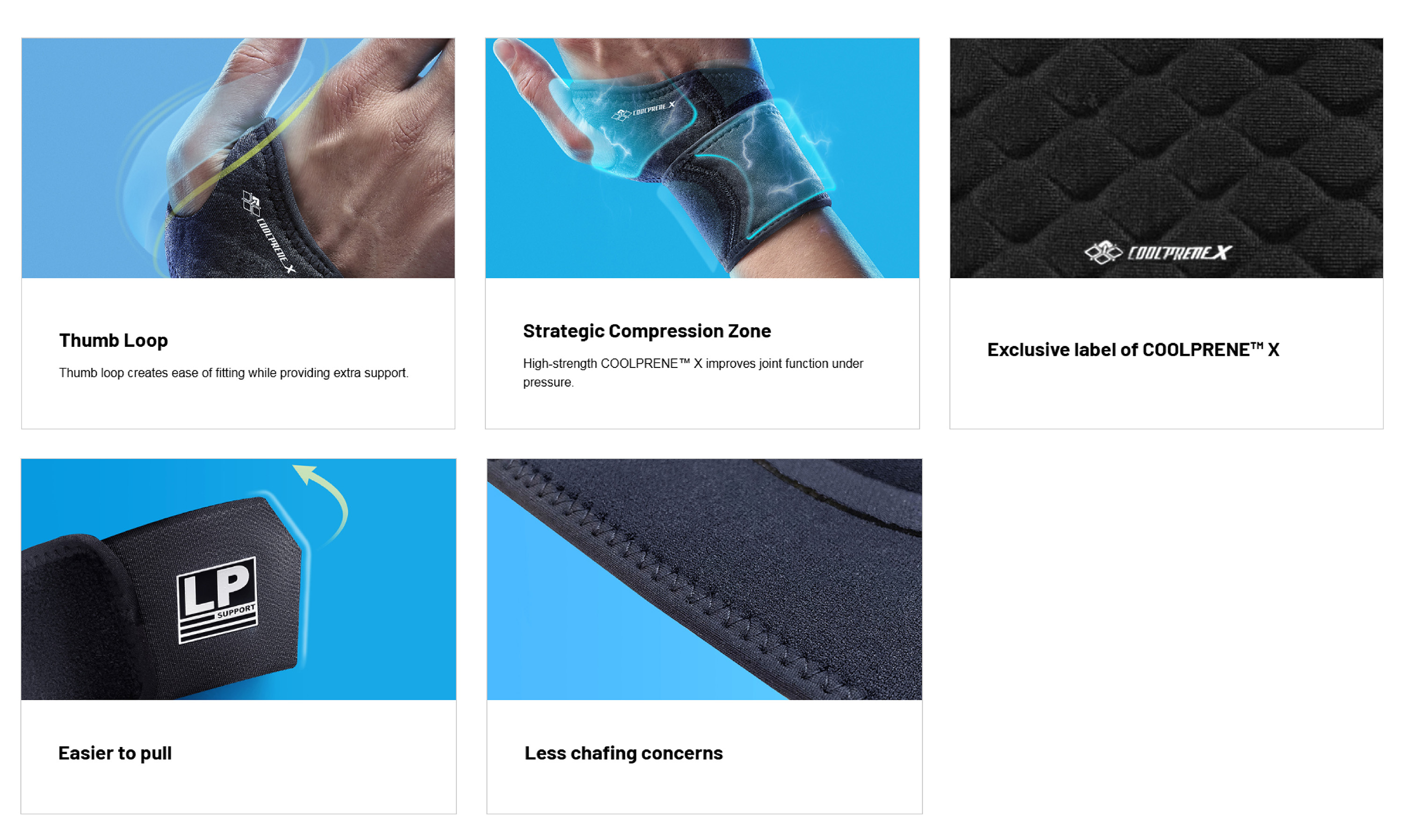 LP FT35CA WRIST SUPPORT is designed to provide better contoured, form-fitting support during wrist movement. Strategically-placed COOLPRENE™ X reinforces the wrist joint and key muscles to help athletes withstand the demands of intense training.