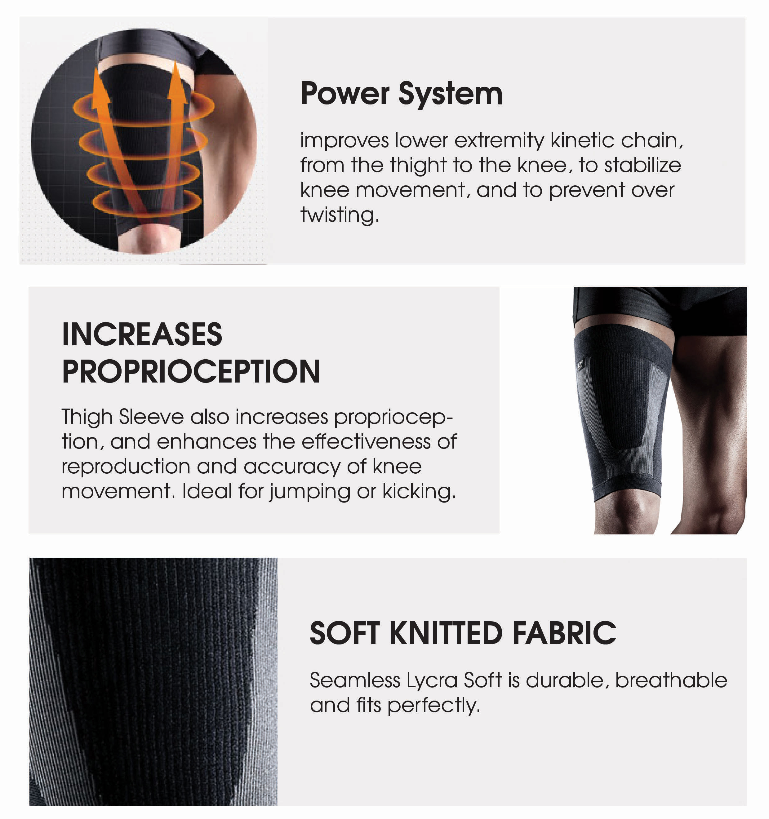 Power System improves lower extremity kinetic chain, from the thight to the knee, to stabilize knee movement, and to prevent over twisting. It also increases proprioception, and enhances the effectiveness of reproduction and accuracy of knee movement. Ideal for jumping or kicking.