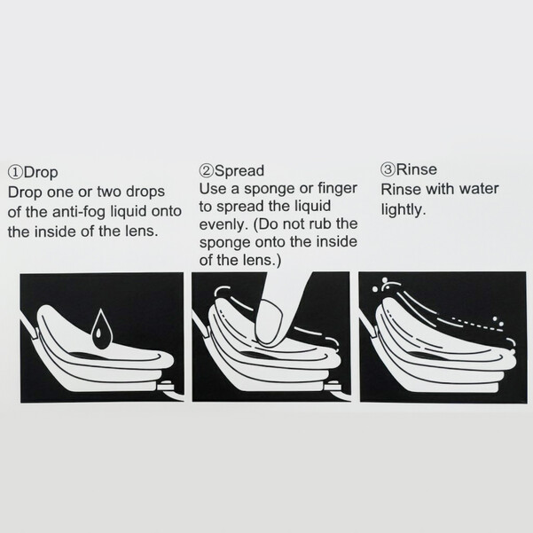 1. Drop 1-2 drops of the anti-fog liquid onto the inside of the lens.