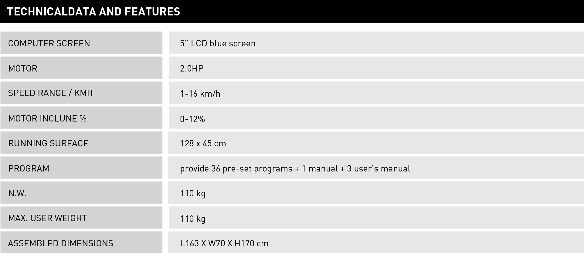 Running surface 128x45cm gives you a comfortable, wider running area.
